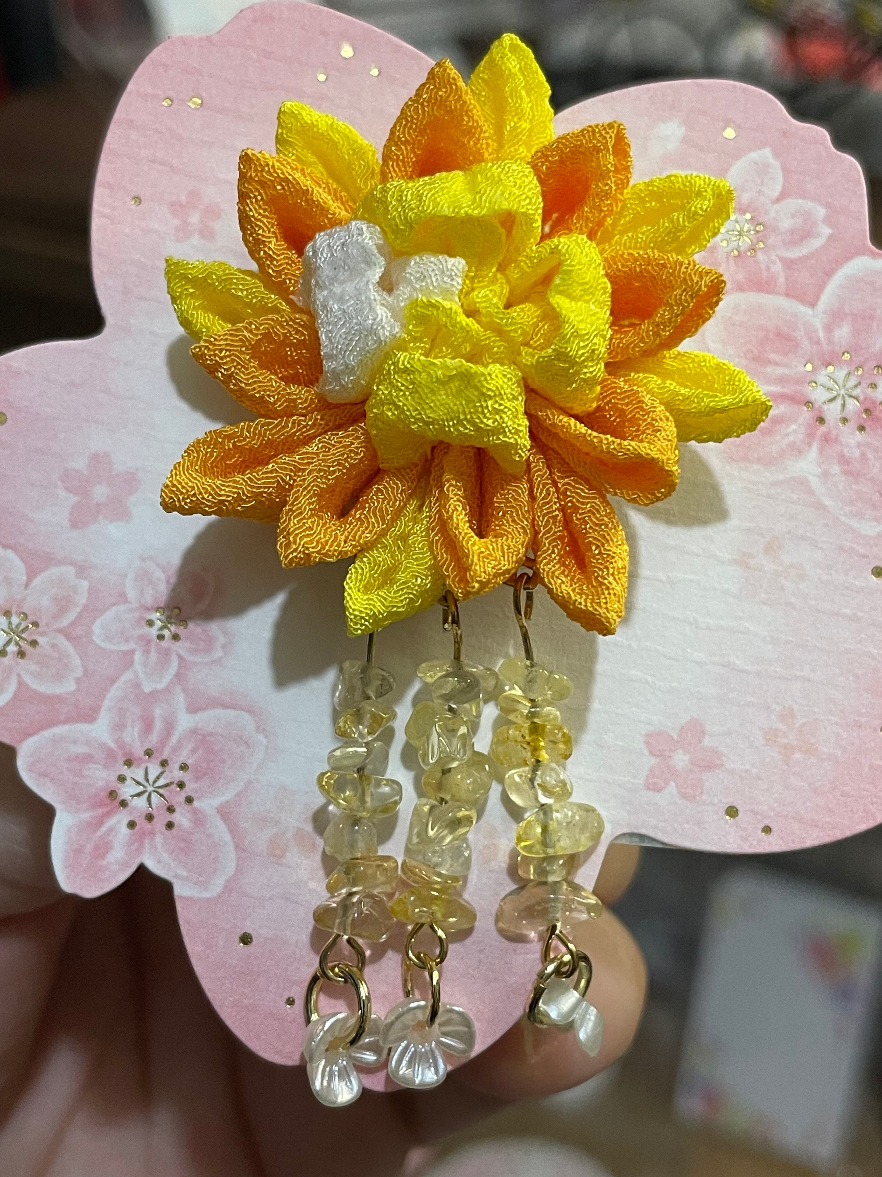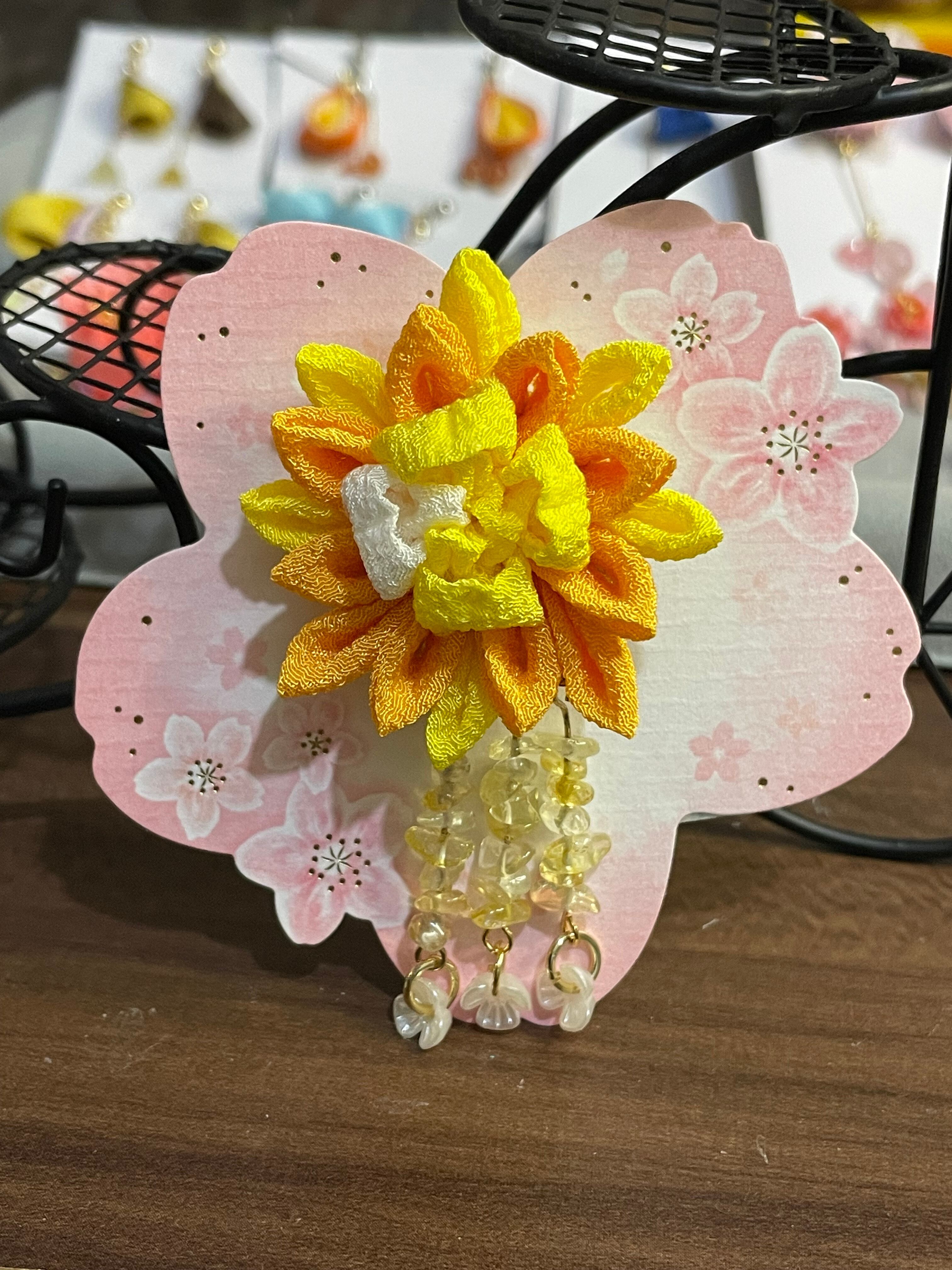 ・カラーバリエーションは明るい黄色で、サイズは約4cm×4cmで、装着時には髪に華やかさをプラスします。