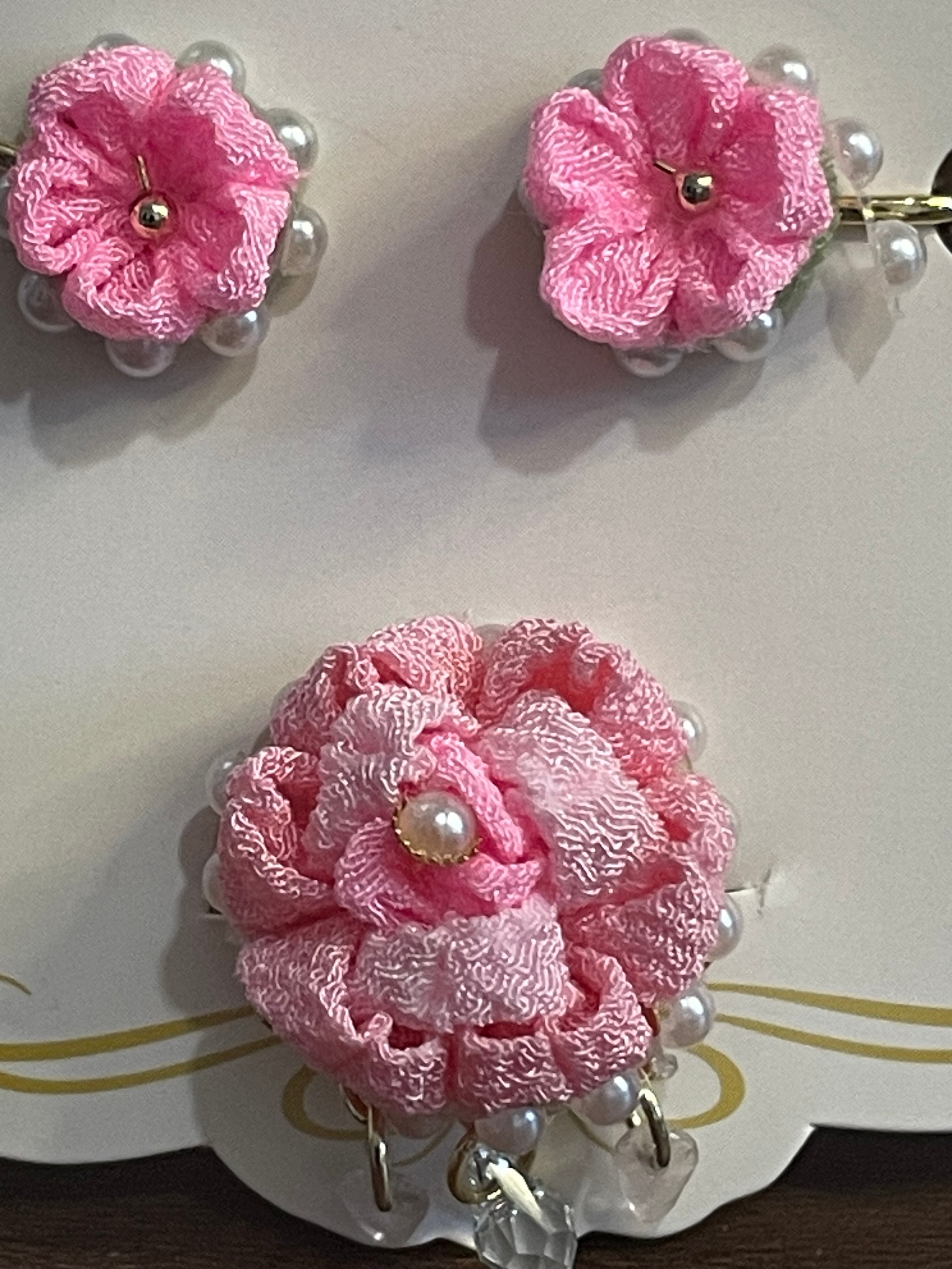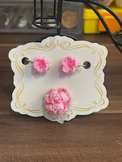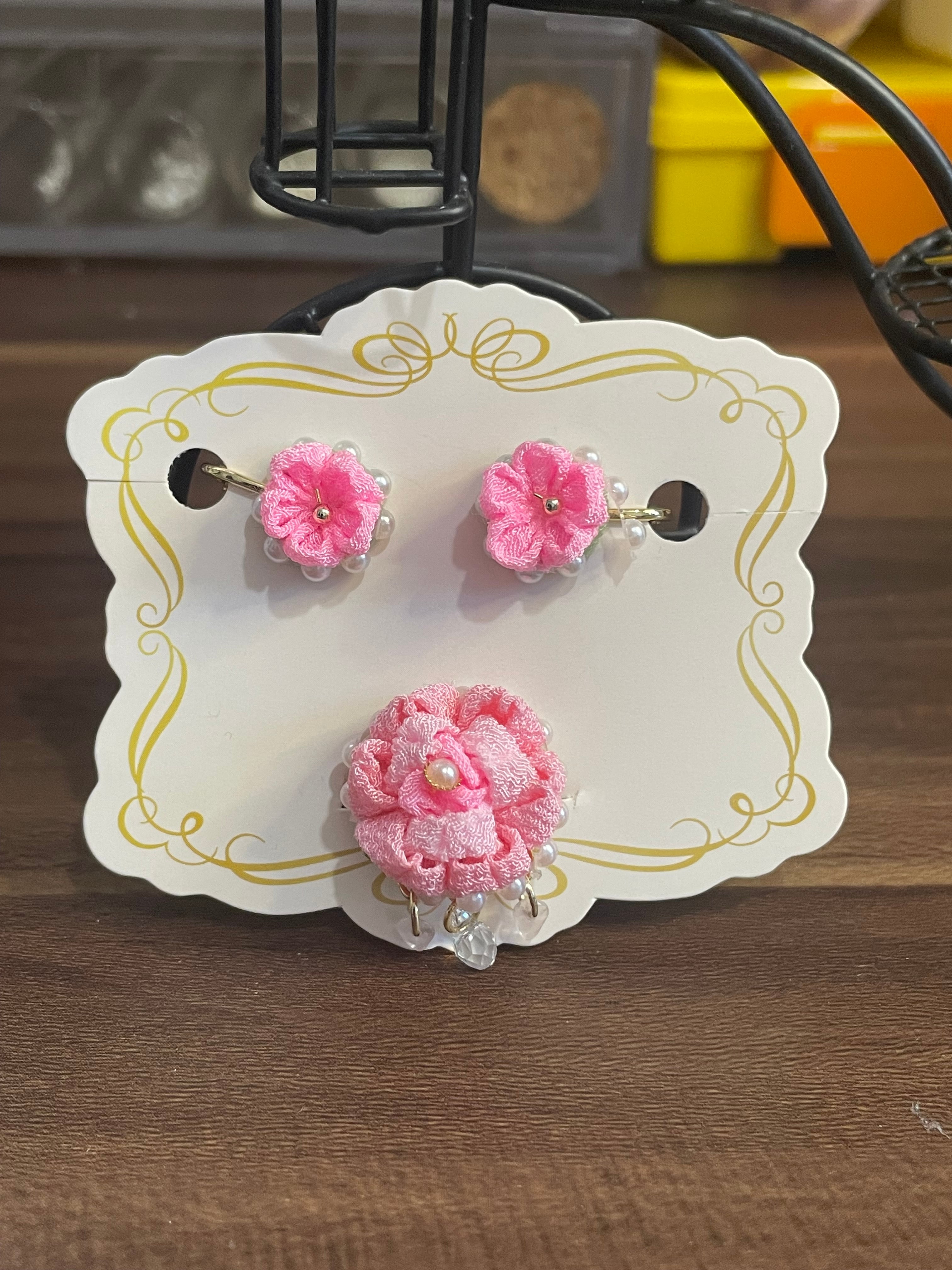・カラーは愛らしいピンクをご用意しており、サイズはイヤリングが約2.5cm×2.5cm、指輪はフリーサイズで調整可能です。