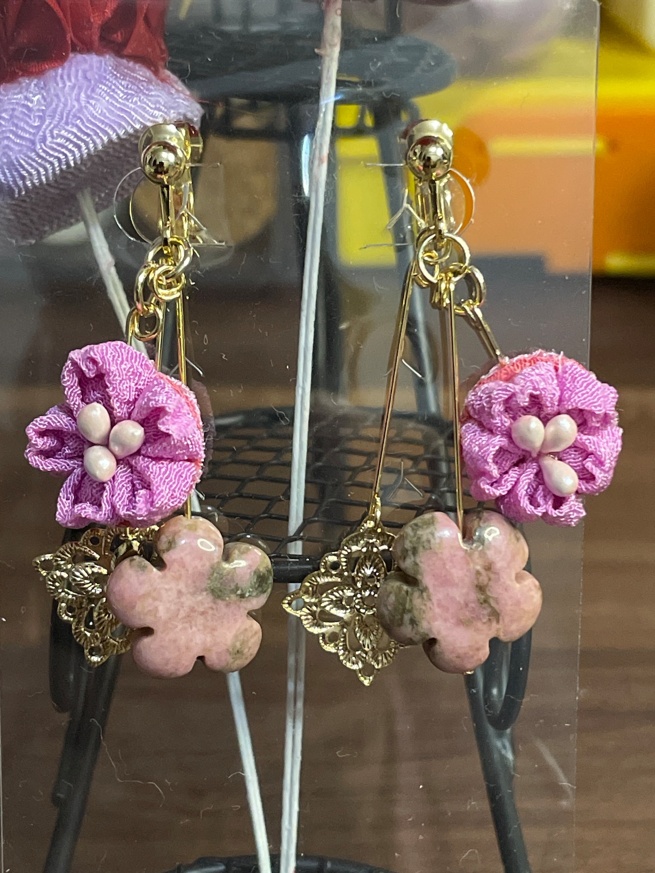 桜型のストーンですが、ピンクと深緑の色合いです。