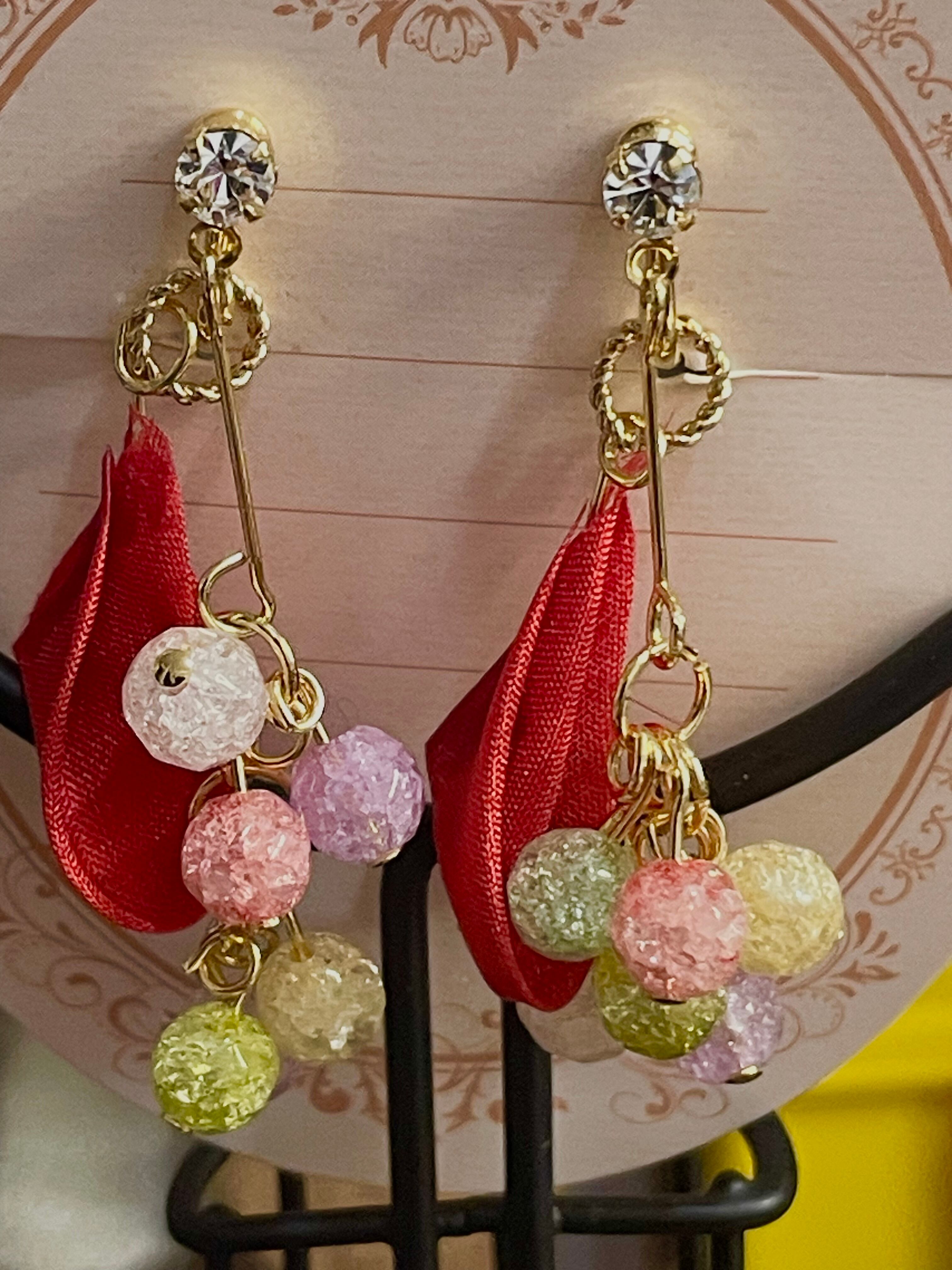 特徴は、繊細な摘み細工と華やかなカラーが見事に組み合わさり、耳元で美しく輝きます。特に、摘み紅の色合いは個性的でありながら上品な印象を与え、あなたのスタイルに特別なアクセントを加えます。一つ一つ丁寧に手作りされており、カジュアルから特別なシーンまで、あらゆる装いにぴったりの魅力的なアクセサリーです。軽やかな着け心地で、日常使いにも特別な機会にも大いに活躍します!
