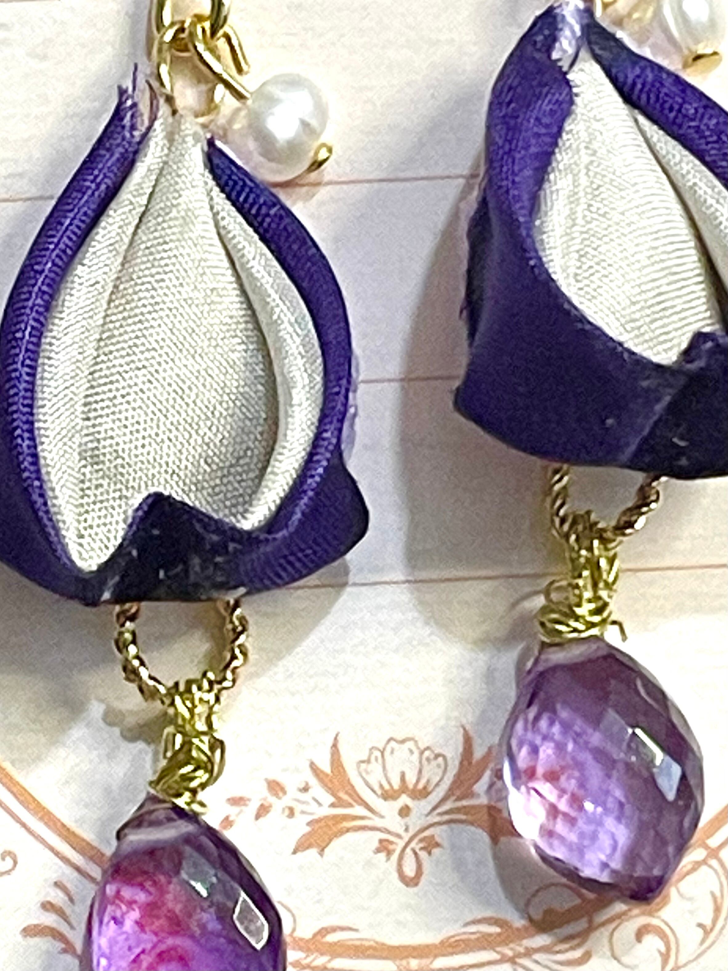 ・カラーは深みのあるアメジストと優雅な淡水パール、サイズは約3cmのデザインが、耳元を美しく演出します。細やかな手作業による独自のテクスチャーが、視覚的な魅力を引き立てています。