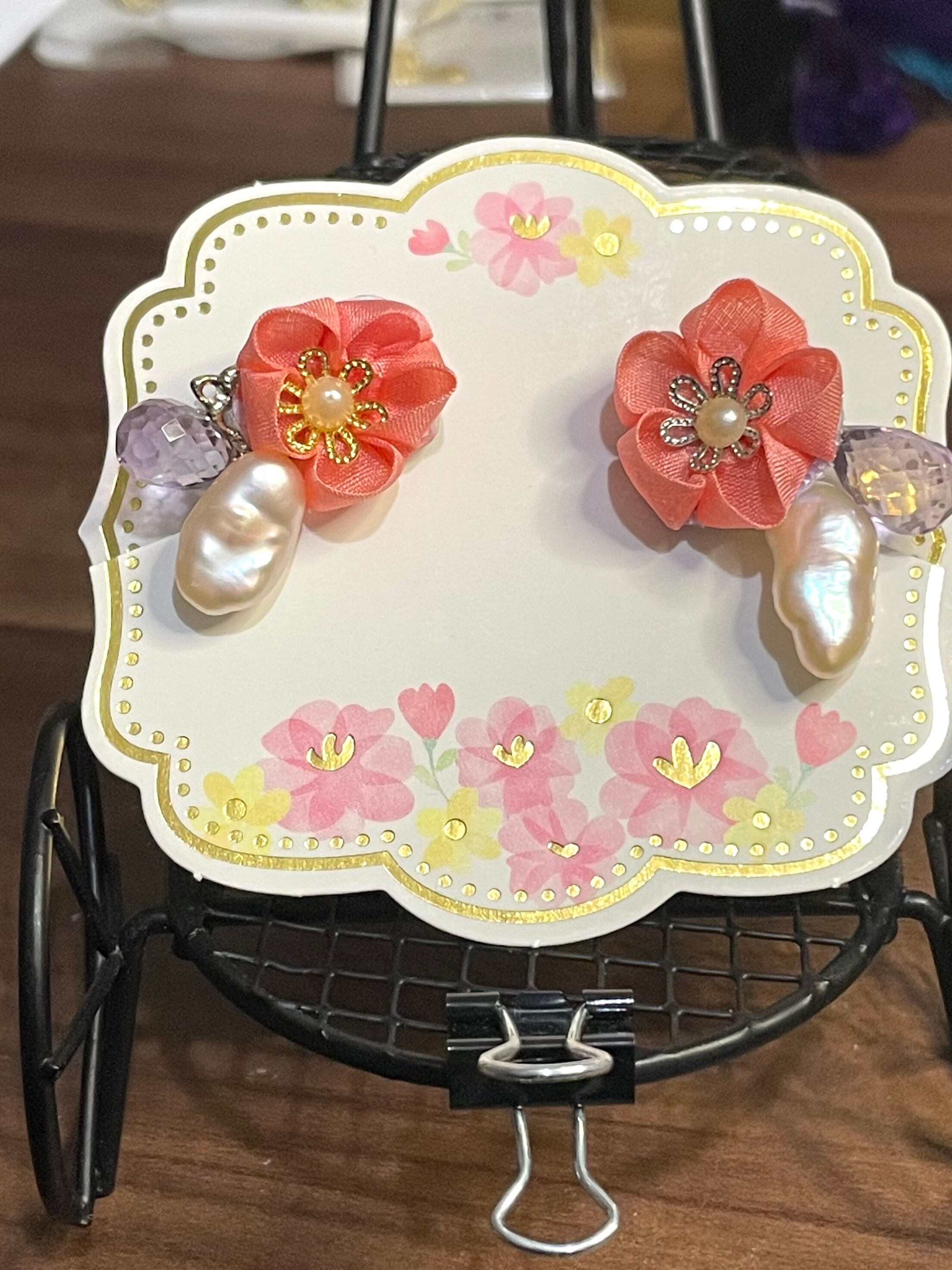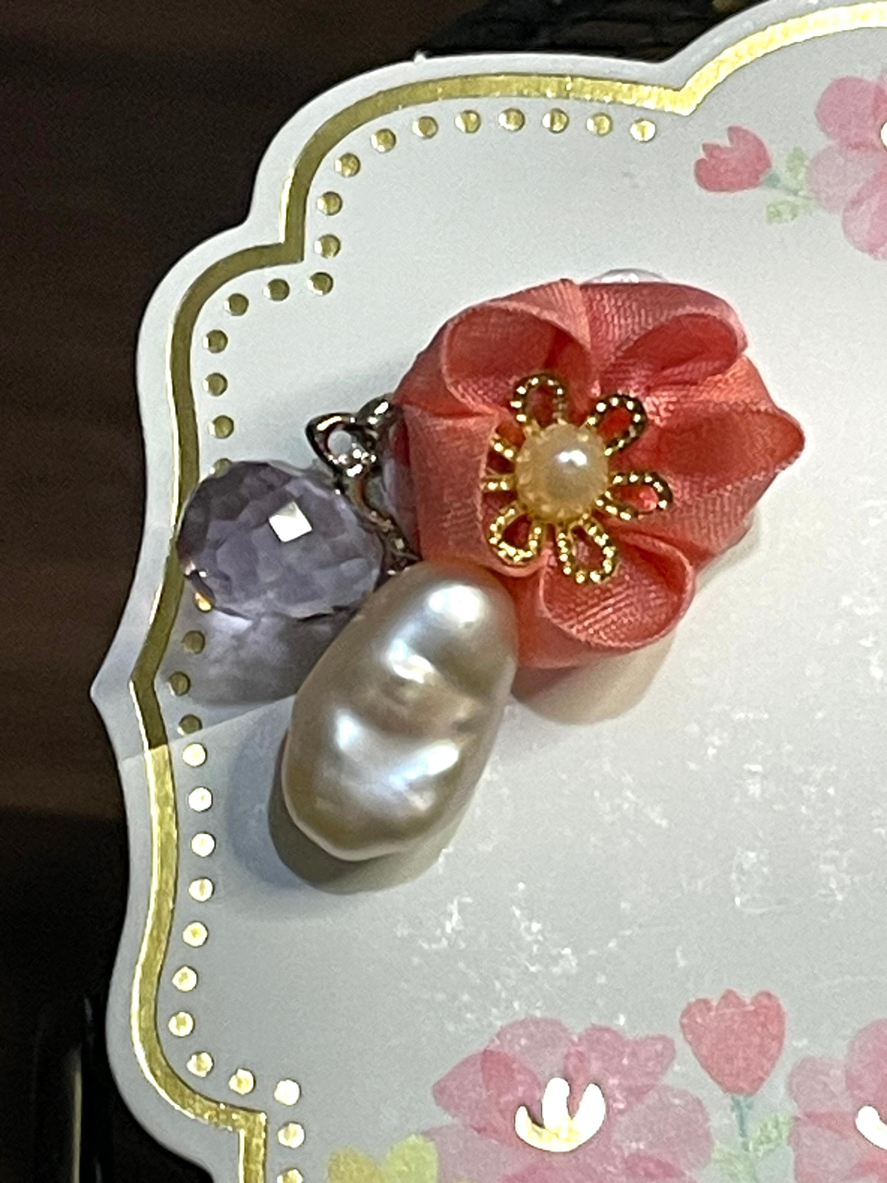 特徴は、魅力的な赤い花と独特なバロックパール、そして神秘的なアメジストが美しく調和し、耳元で輝きを放ちます。特に赤い花の鮮やかな色合いとバロックパールの個性的な形は、あなたのスタイルに特別なアクセントを加え、どんなシーンでもその魅力を引き立てます。一つ一つ丁寧に手作りされており、カジュアルな日常使いから特別なイベントまで幅広くお使いいただける素敵なアクセサリーです。軽やかな着け心地で、存在感を感じながらもストレスなくご利用いただけます!