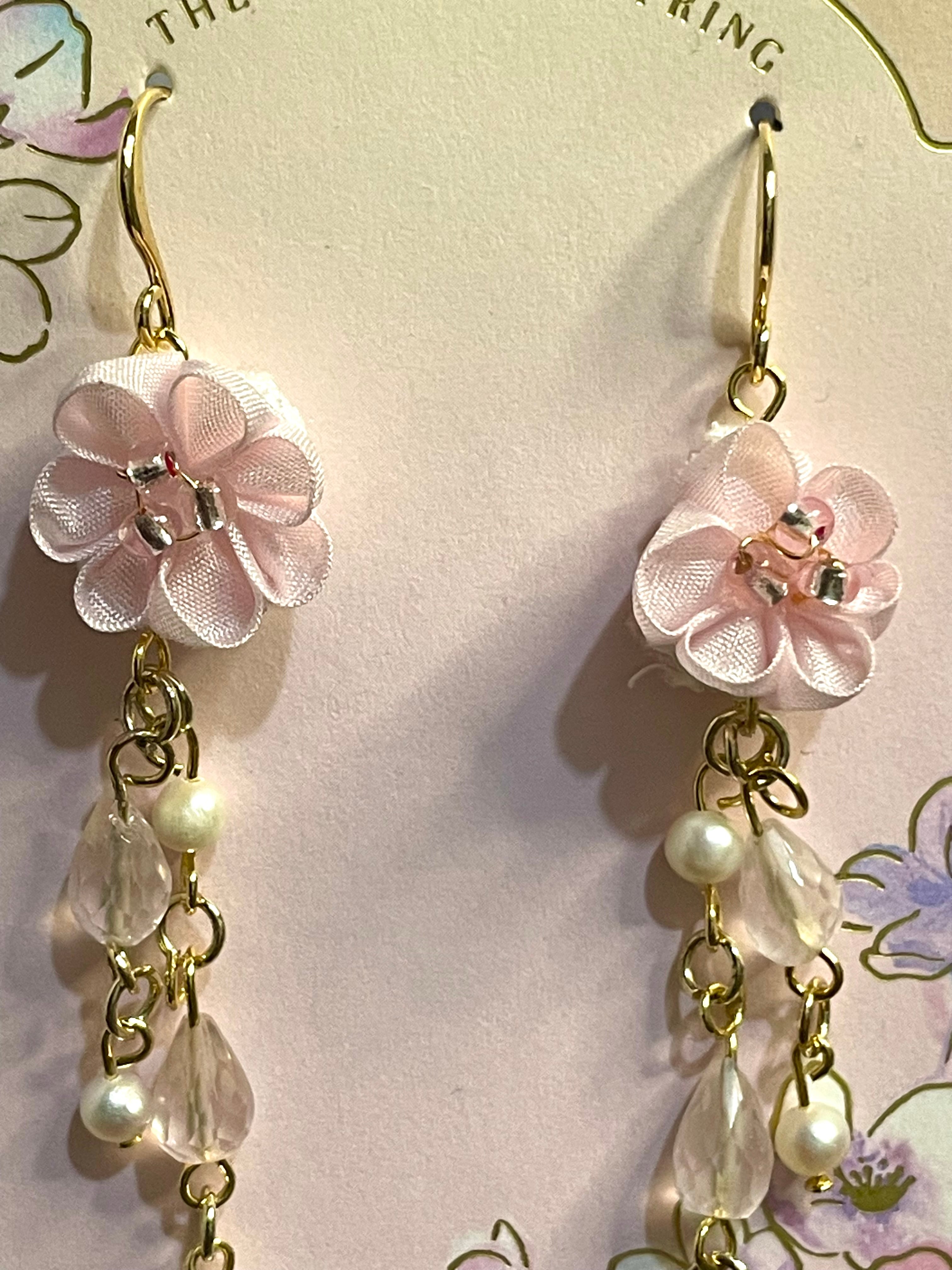 特徴は、シルクの桜とローズクォーツ、淡水パールが美しく組み合わさり、あなたの耳元に優雅さと上品さをもたらします。柔らかなシルクの質感と繊細なデザインが調和し、特別な日常やイベントで周囲の視線を惹きつけることでしょう。一つ一つ丁寧に手作りされており、軽やかな着け心地を実現しています!