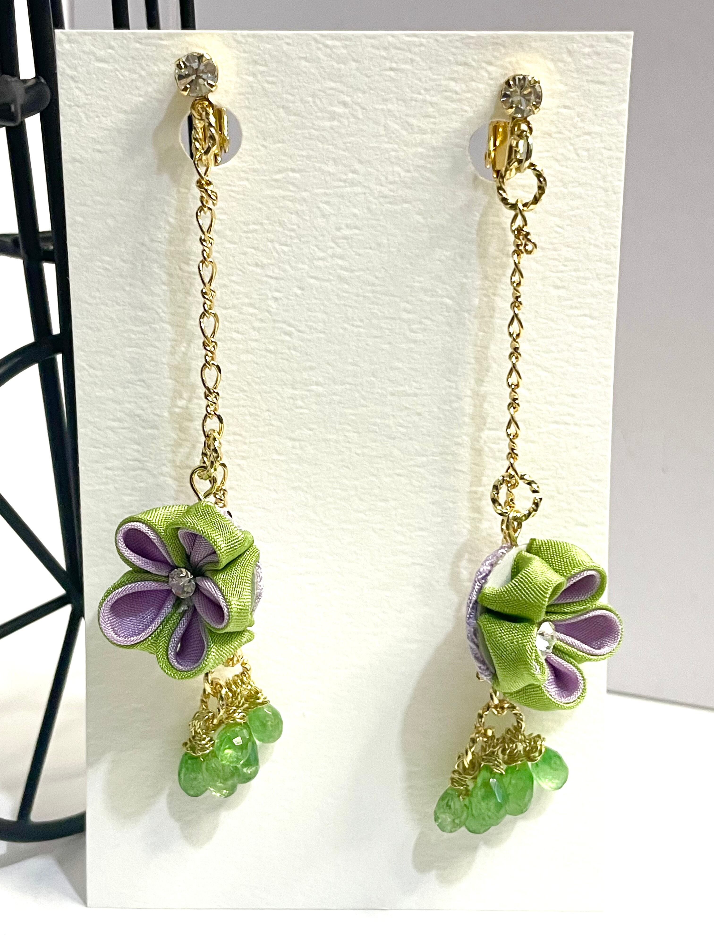 イヤリング 二重摘み 緑
