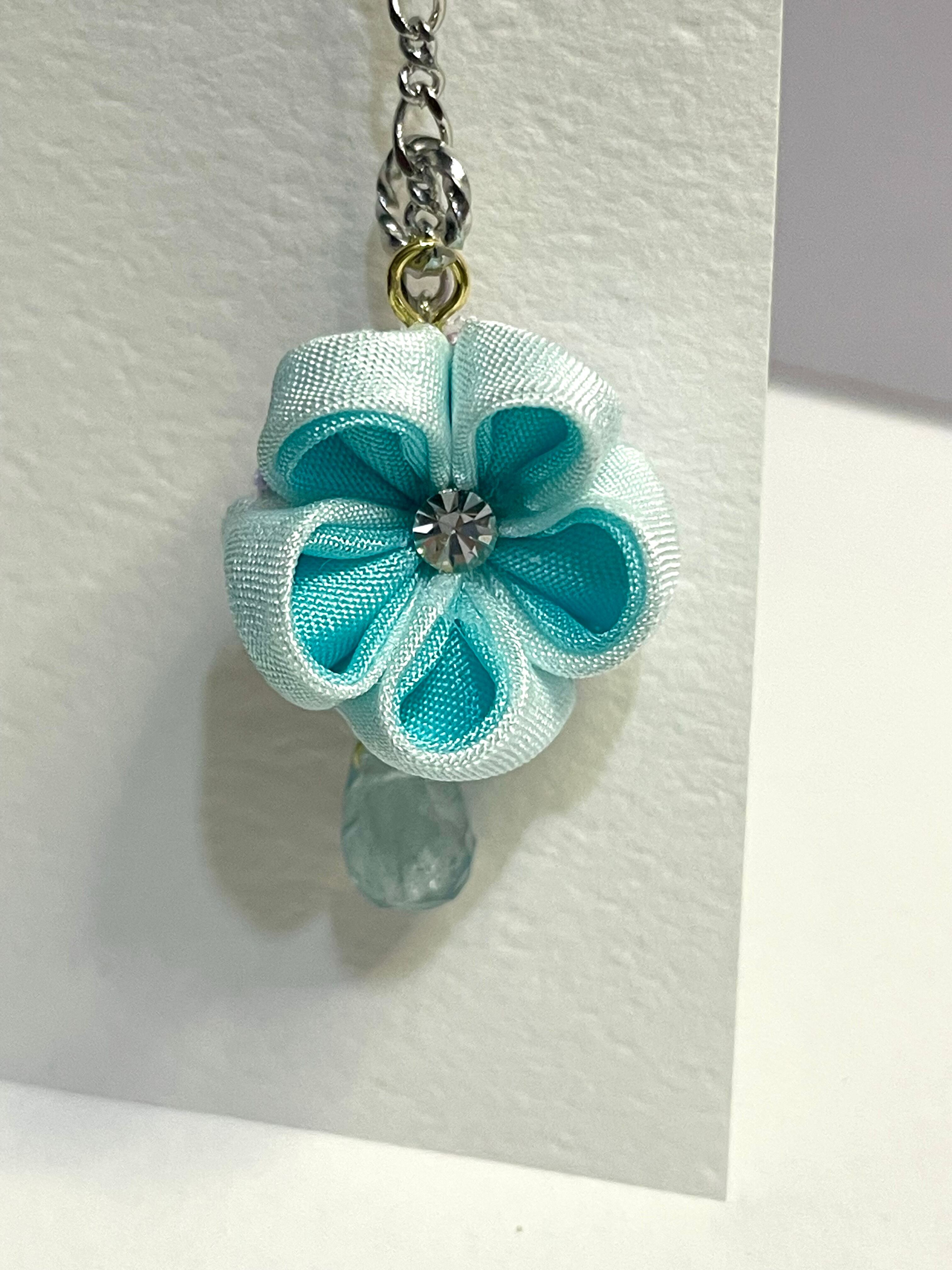お花はシルク、石はアクアマリンを使用(このアクアマリンはカットが素晴らしく煌めきがあります)
