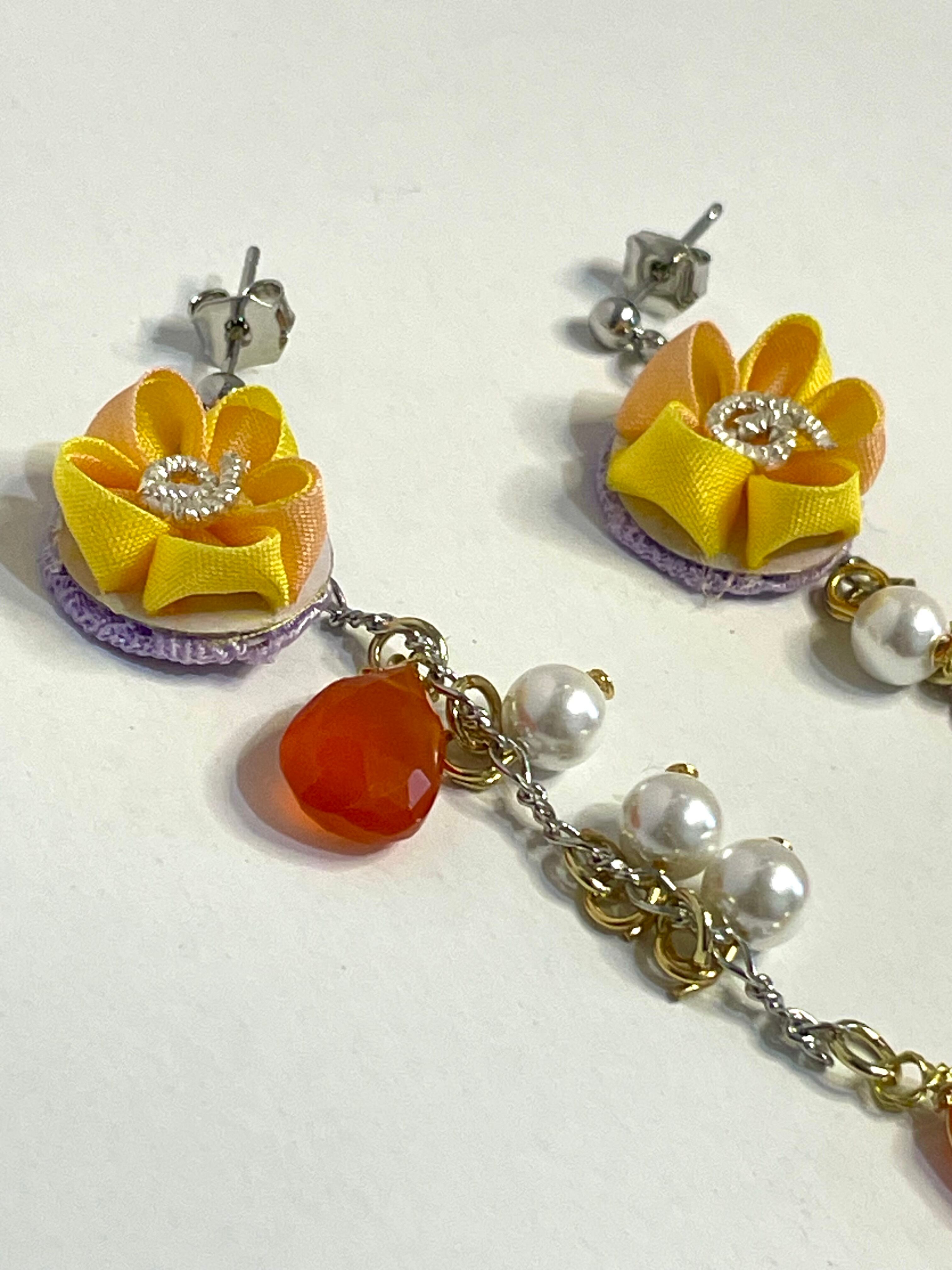 花はシルクを、パールとカーネリアンを使って制作しました。