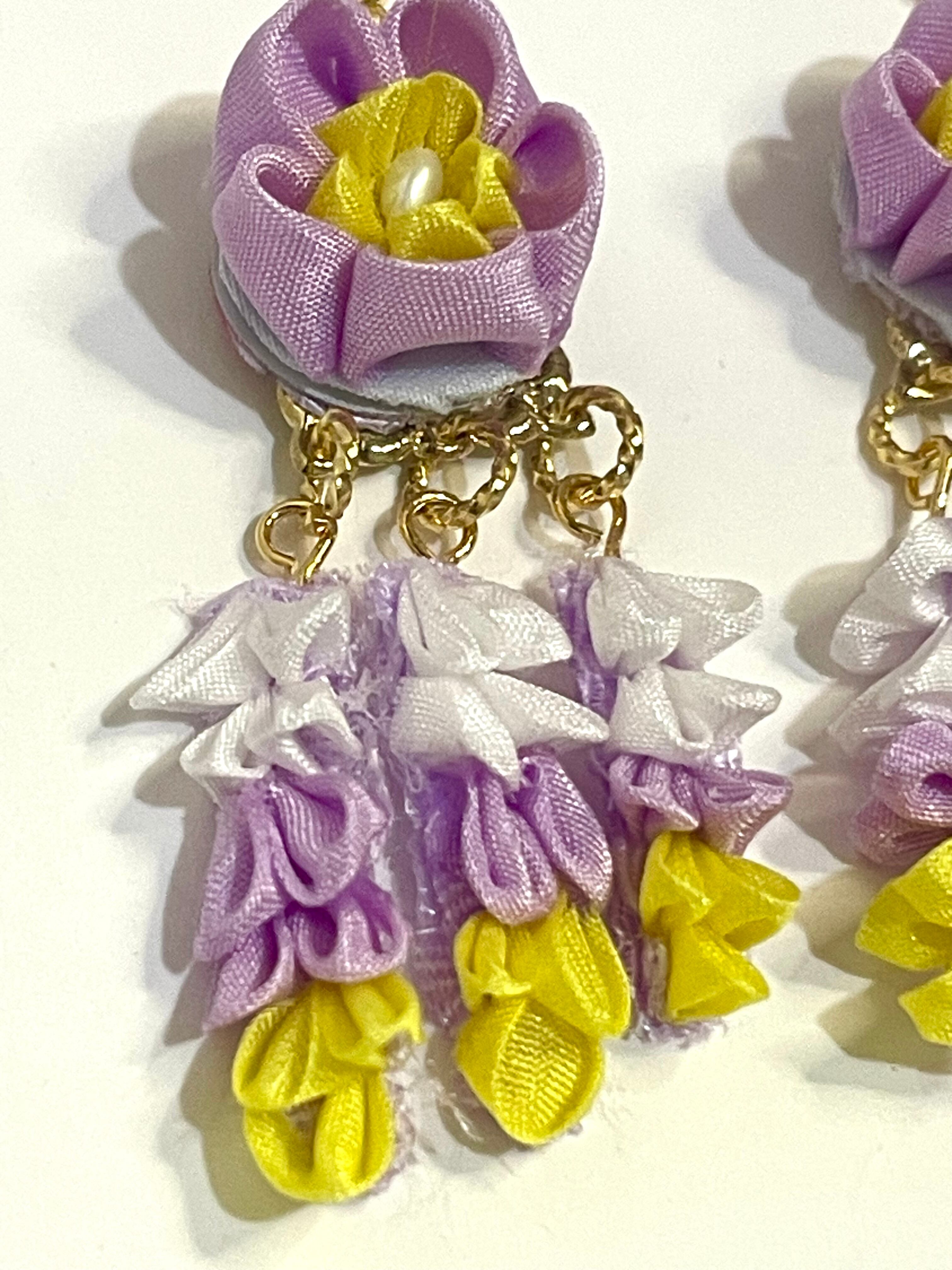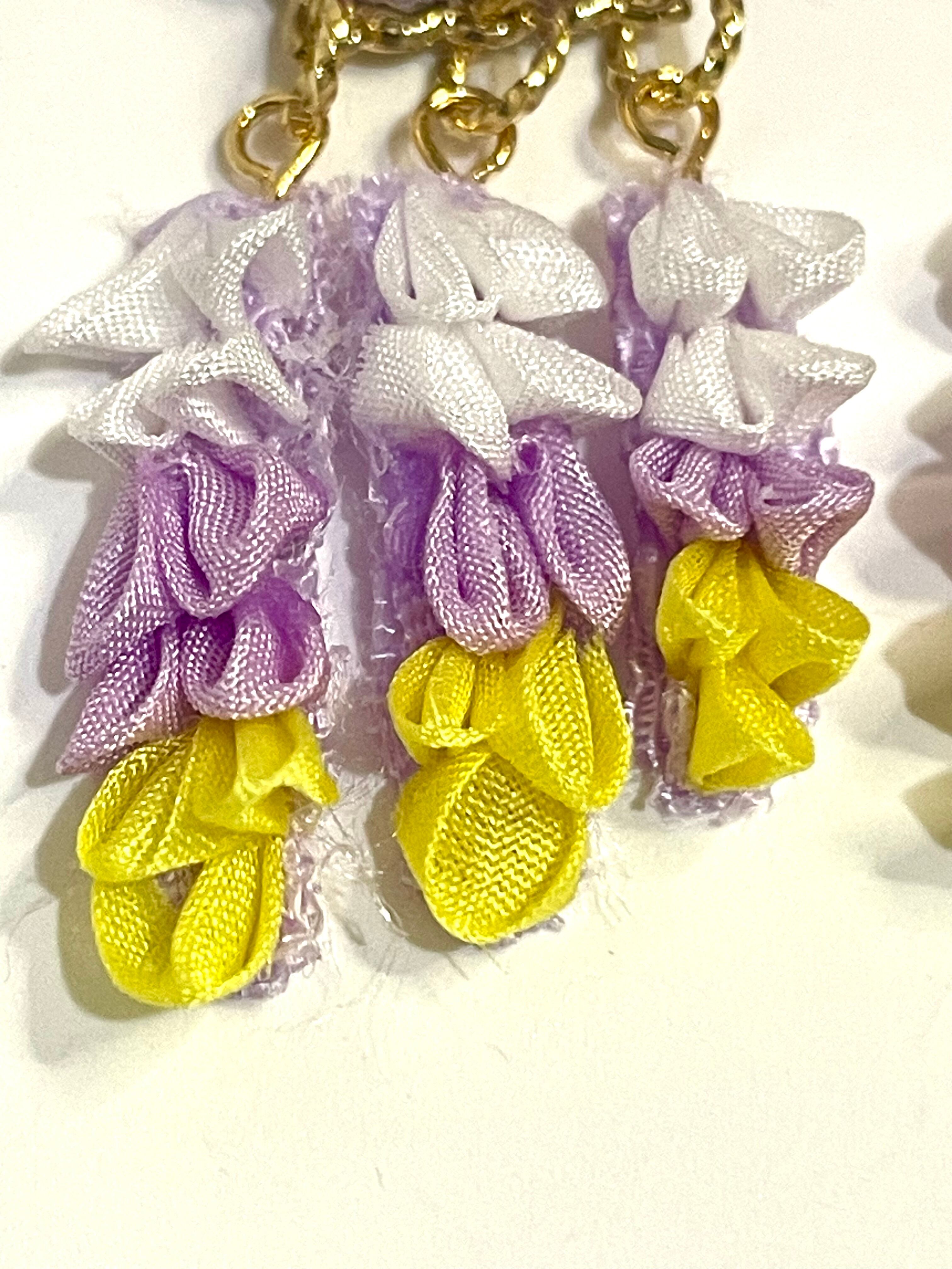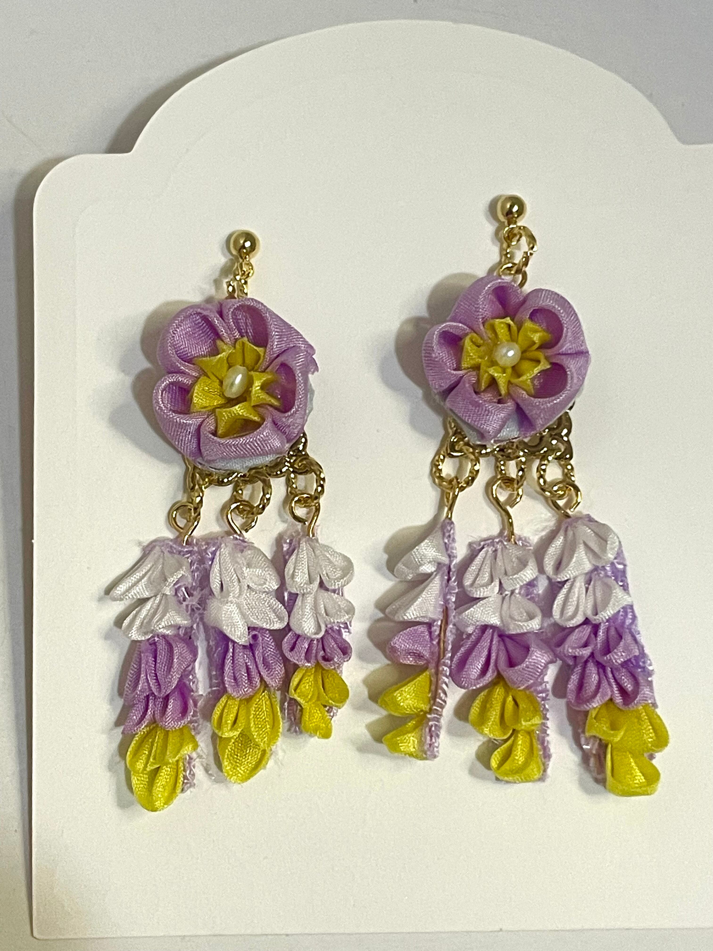 シルクの素材を使い花と下がり、かんざしのイメージをアクセサリーで表現しました。アップでの写メを見ますとまだまだ荒い仕上がりですが和がお好きな方にはどう映るのでしょうか!