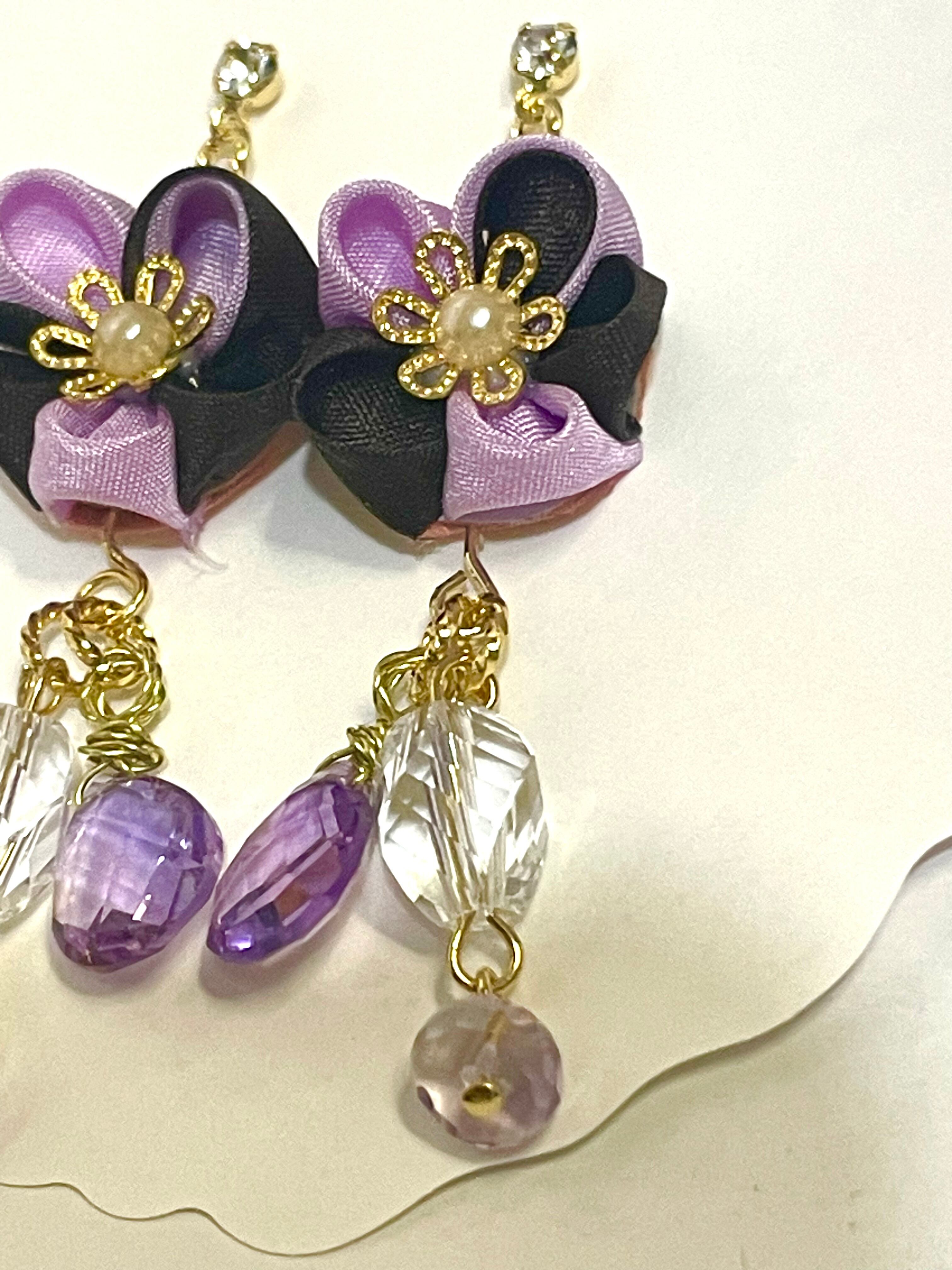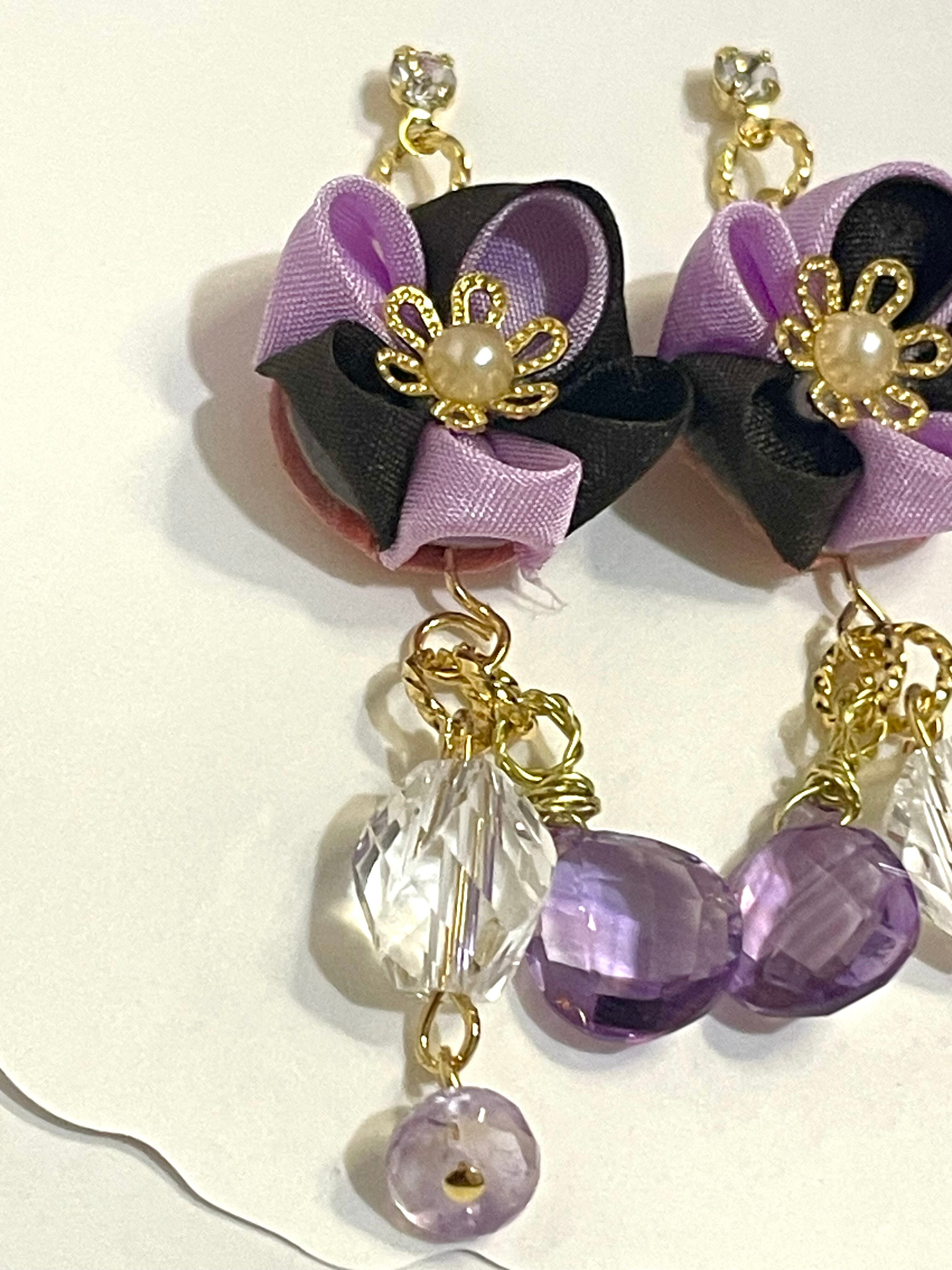 生地はシルクでお色はふじ色とバターショコラで作成しました。